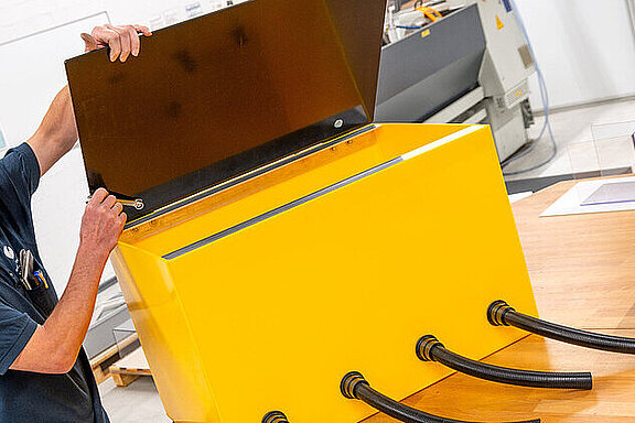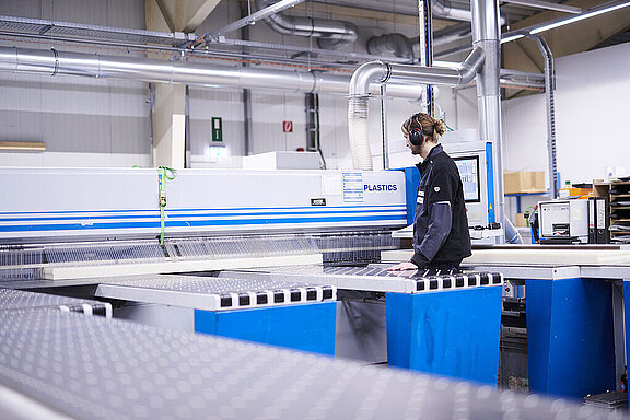 Optimierter Maschinenschutz durch glasklare KunststoffeWirtschaftlichkeit und zukunftsweisendes Design von Maschinen gehören untrennbar zusammen. Maschinenschutz aus Polycarbonat und schlagfestem Acrylglas ist ein hervorrangendes Beispiel für genau diese Kombination.Optik und FunktionUnsere glasklaren Werkstoffe sind ideal, um industrielle Prozesse in den Mittelpunkt zu stellen.Qualitätskontrolle erfolgt auf Sicht: Durch die transparenten Schutzverkleidungen können schnelle optische Prozesskontrollen gewährleistet werden. Stillstandzeiten verursacht durch Fehlersuche werden so deutlich reduziert.Sicherheit durch SchlagfestigkeitZusätzlich bietet der Maschinenschutz dank seiner Schlagfestigkeit einen hohen Sicherheitsvorteil. Die entsprechenden Festigkeiten erreichen wir durch umlaufende Kaltkantungen. Scheibenprofile werden dadurch oft überflüssig. Wir liefern eigensteife und verzugsfreie Verkleidungselemente bis zu einer Dicke von 12 mm – natürlich auf Wunsch auch mit UV-Schutz. Wichtig zu wissenUnsere Kunststoffe sind zu 100% recyclebar!